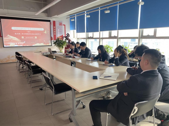 会上,赵宁卓向全体与会人员传达了《中共宝鸡市国有资产经营有限责任公司委员会关于召开2020年度组织生活会和民主评议党员工作的通知》要求,组织委员任洁领学了“十四五”发展的主要目标;赵宁卓领学了“习近平在省部级干部学习贯彻十九届五中全会精神专题研讨开班式上讲话”;宣传委员梁宁领学了中共宝鸡市第十二届委员会第九次全体(扩大)会议精神。 会议最后要求全体党员同志要认真撰写个人检视剖析材料,为专题组织生活会做好充足准备。
